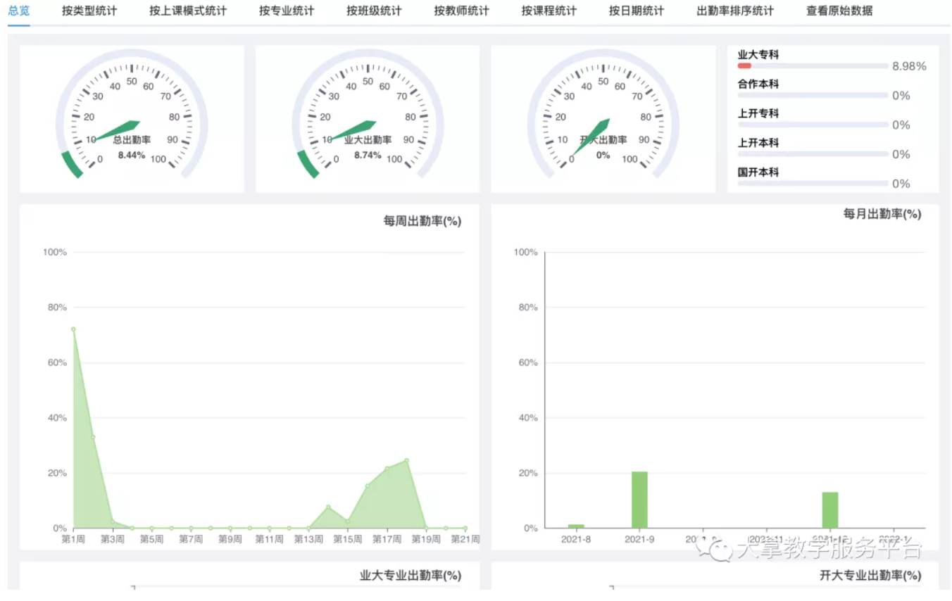 7)系统自身包含完整的出勤管理系统,可以自动对出勤率进行统计分析计算。